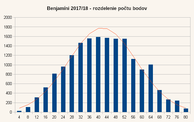 Priemer získaných bodov je 36,66 (zo 72); medián je 36.