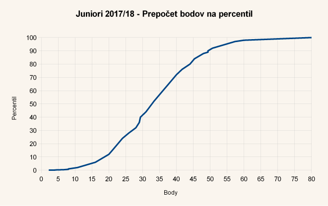 Naše diagramy prepočet bodov na percentil umožňujú každému súťažiacemu odhadnúť si svoj percentil keď poznajú počet svojich bodov, a tým získať informáciu, kde sa umiestnil v rámci celého Slovenska.