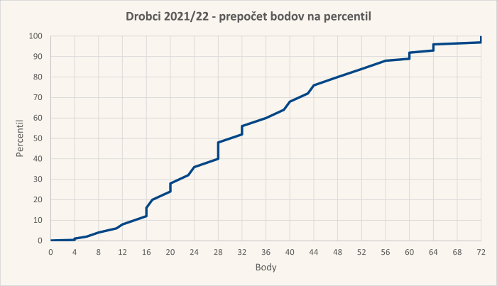 Naše diagramy prepočet bodov na percentil umožňujú každému súťažiacemu odhadnúť si svoj percentil keď poznajú počet svojich bodov, a tým získať informáciu, kde sa umiestnil v rámci celého Slovenska.