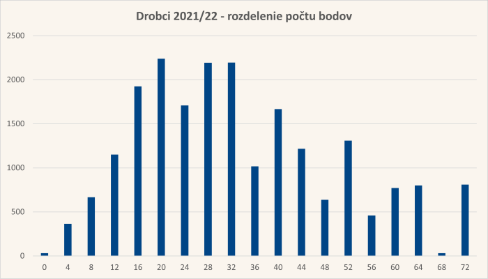Priemer získaných bodov je 21,46 (zo 48); medián je 21,35.